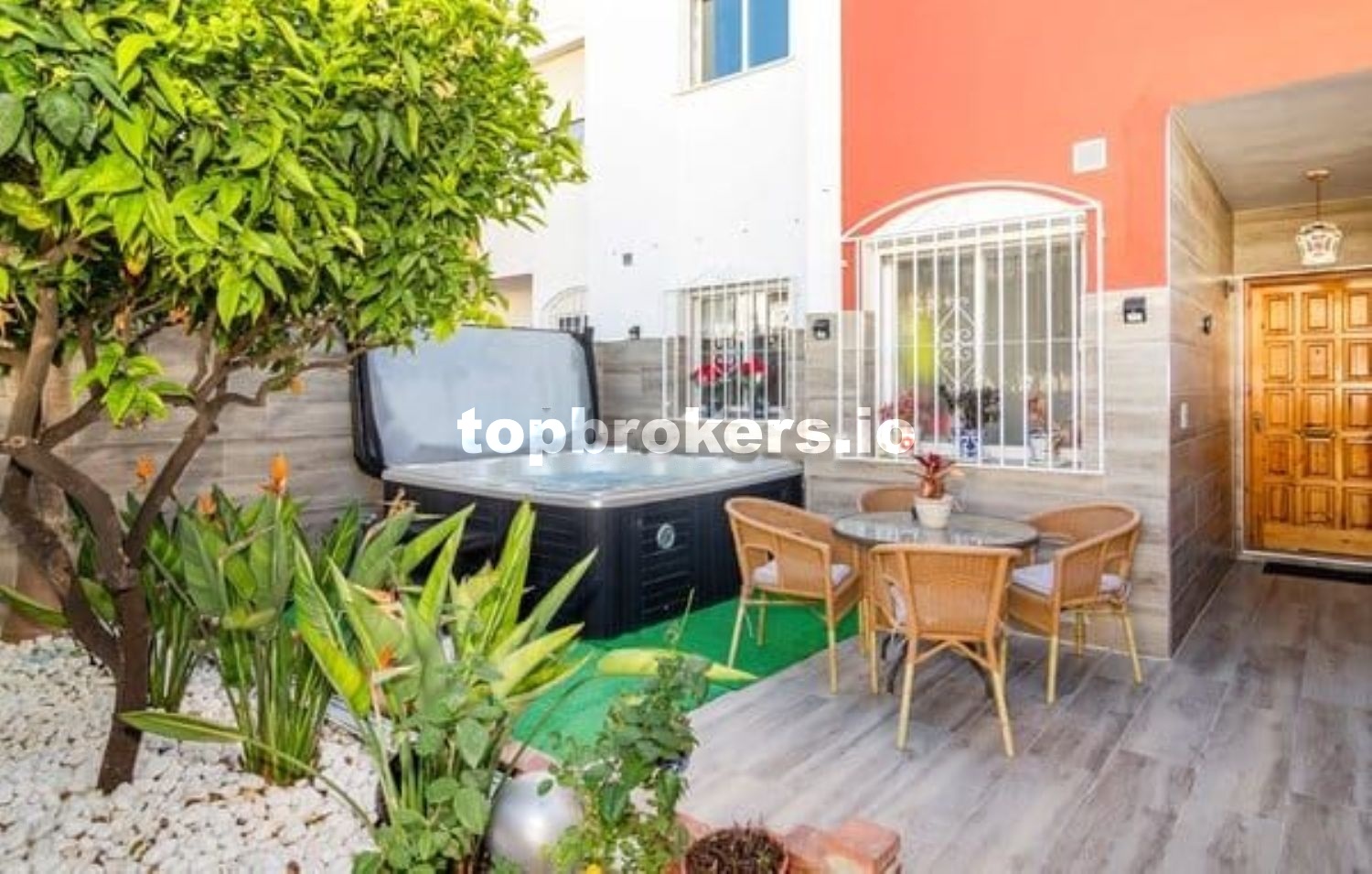 La entrada a la casa se hace a través de una Bonita terraza orientada a la calle.