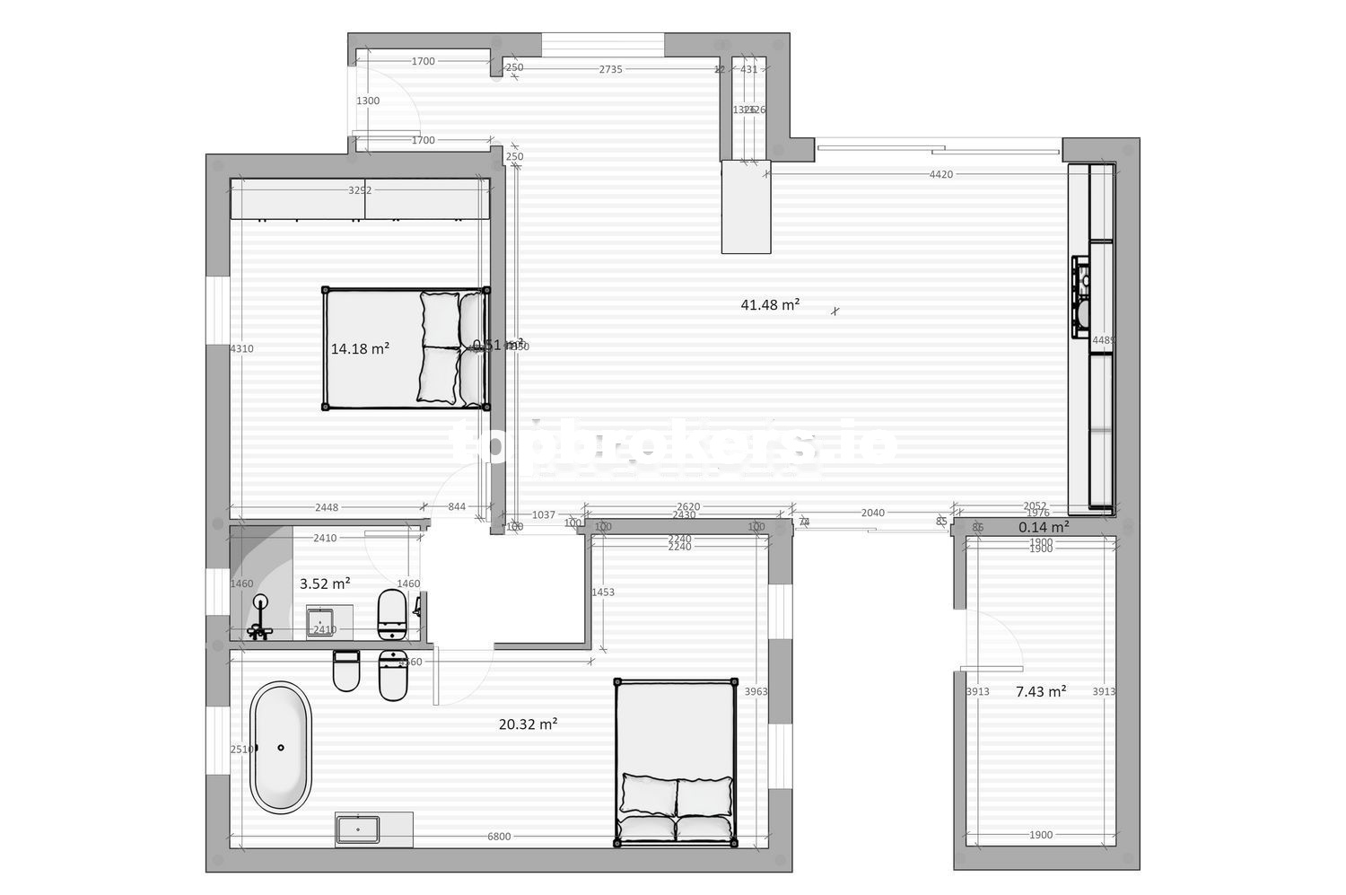 - Salón/cocina (42m2)