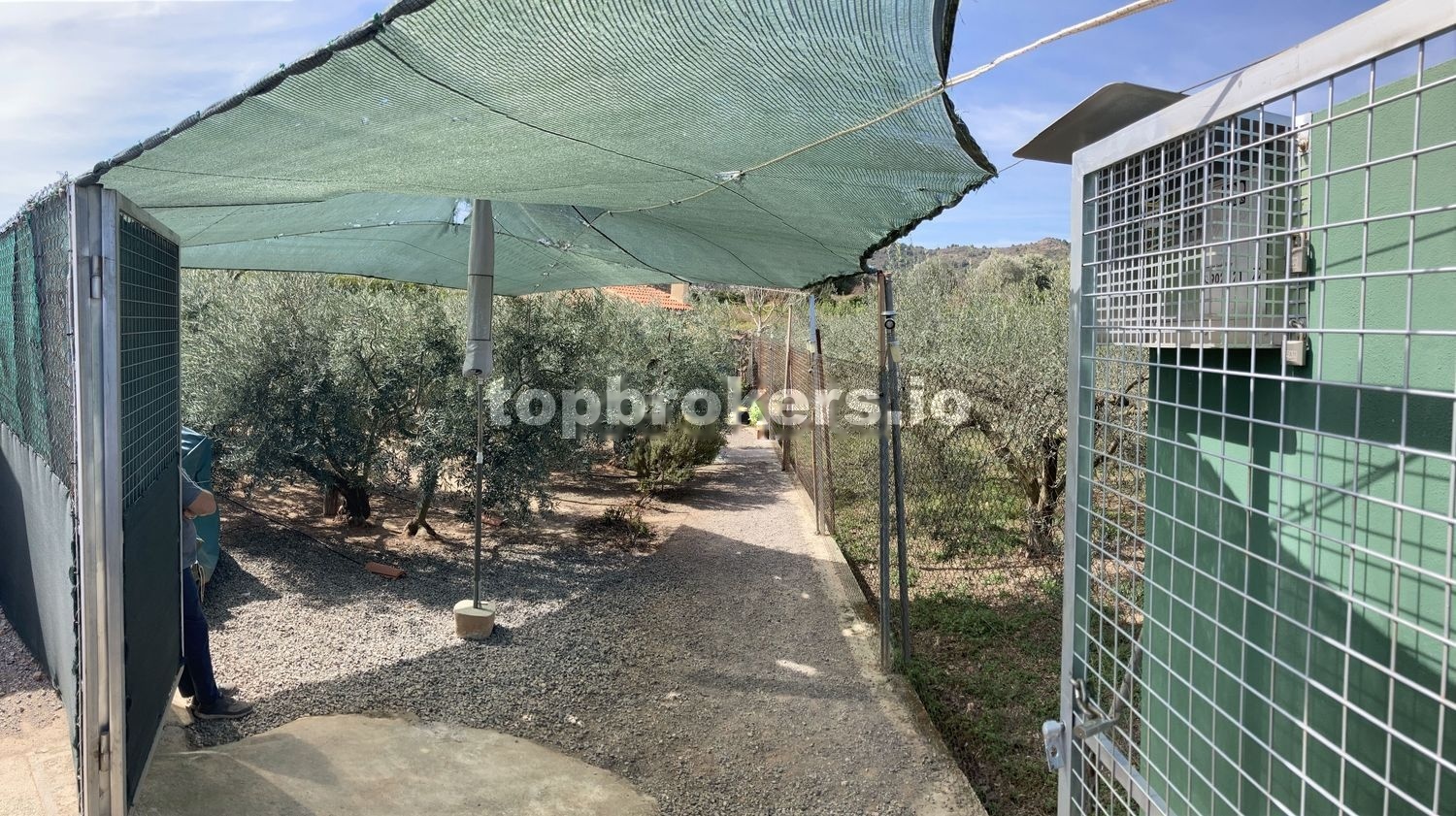 -Valla de 2m de altura de acero recubierta de malla de ocultacion visual, que rodea la parcela al completo.