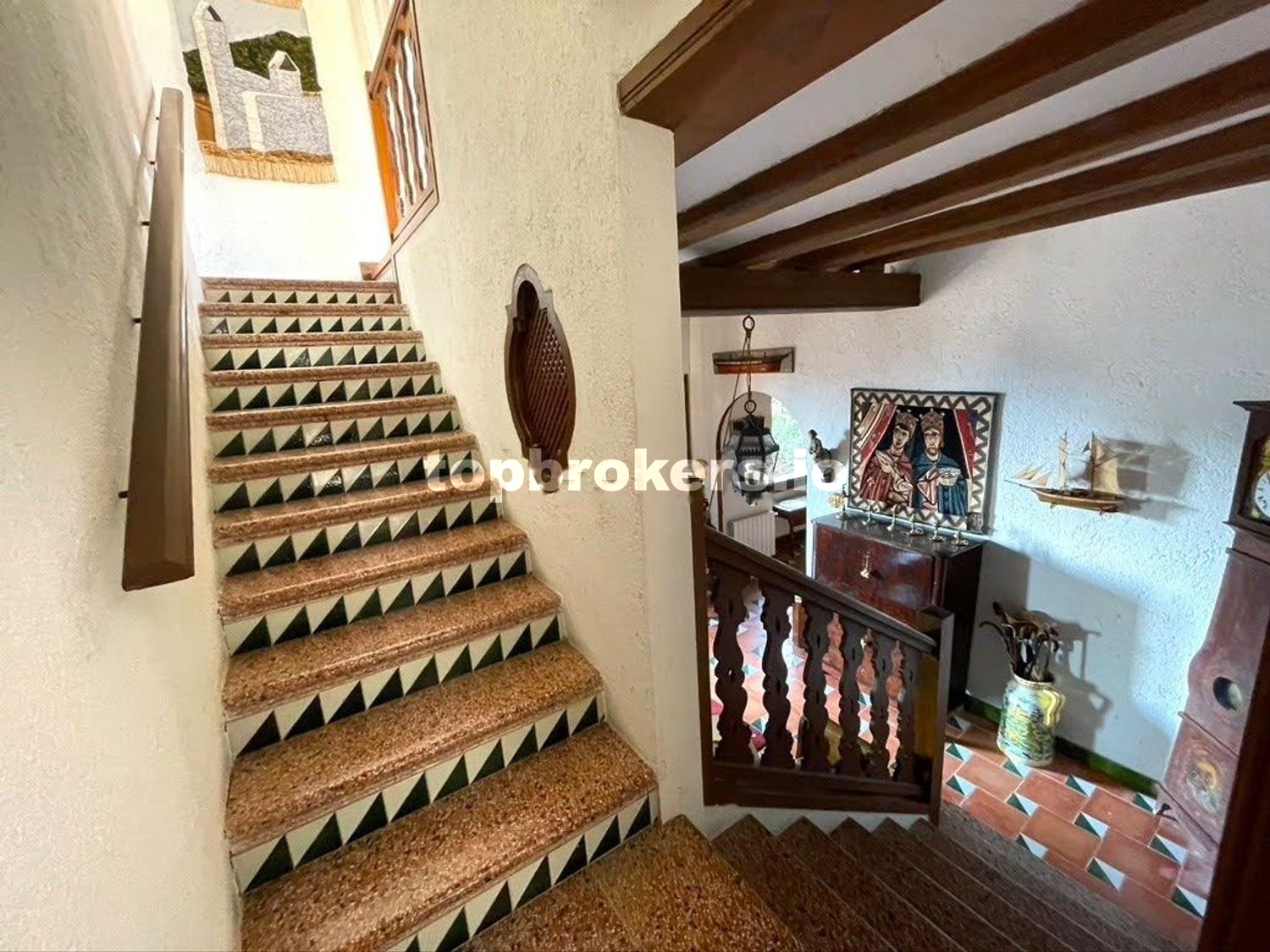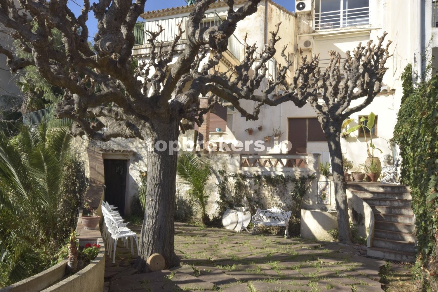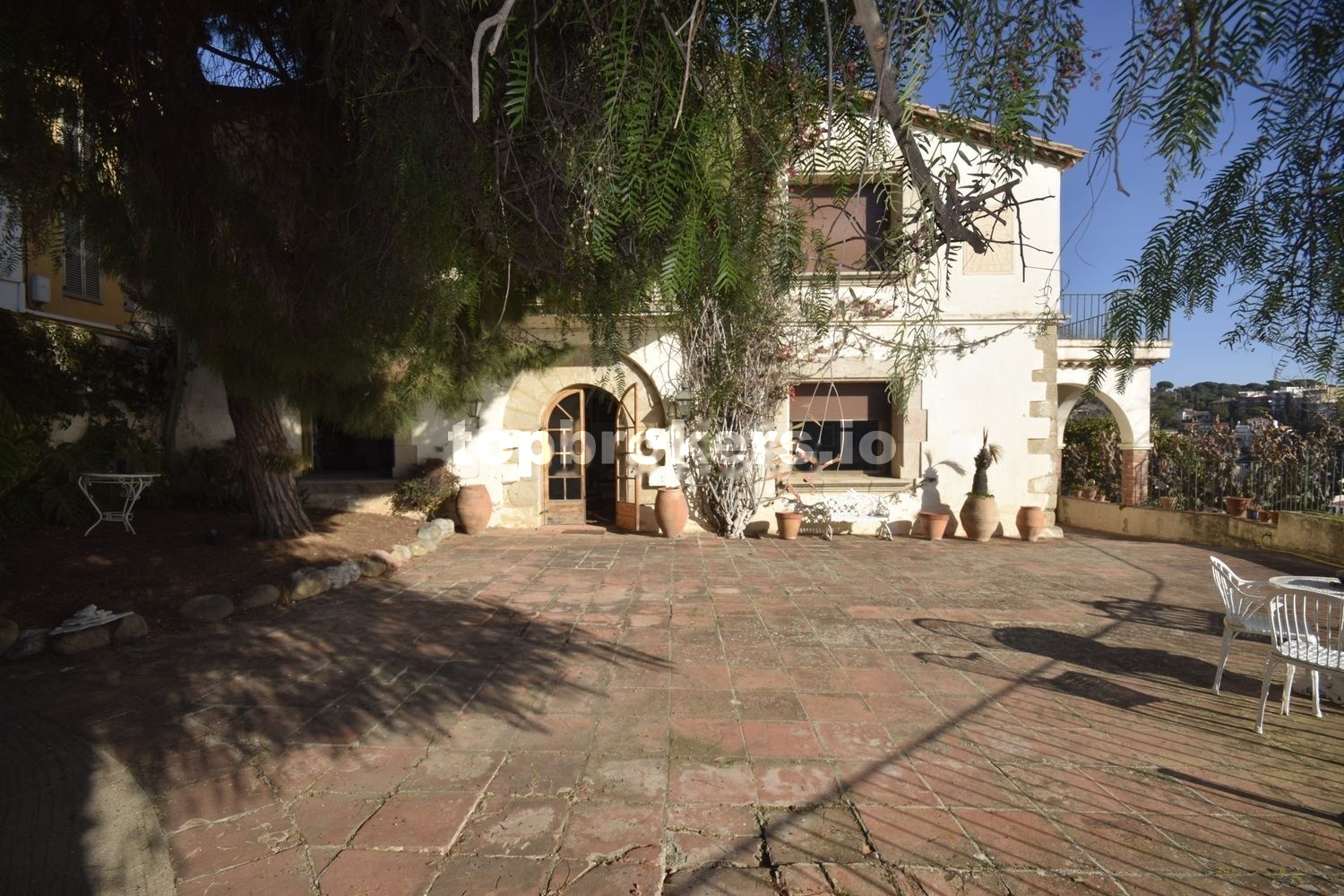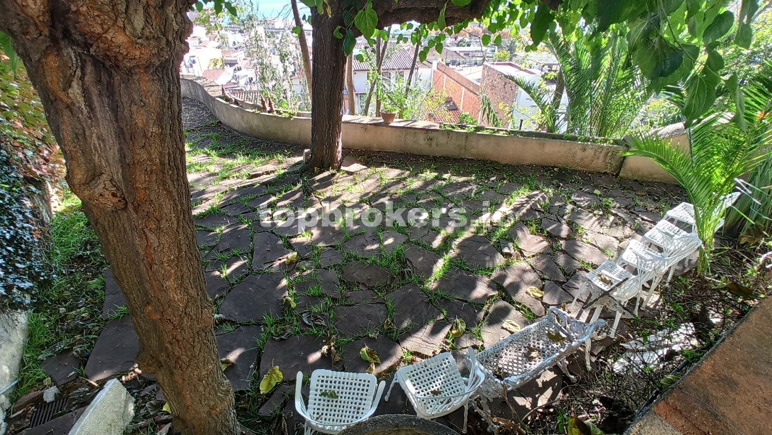 Magnifica vista del pueblo, la playa y el mar. El espacio de la casa disfruta de la sombra de un par de pinos, un pimentero rosa, y una palmera, además de dos grandes moreras, entre otras plantas.