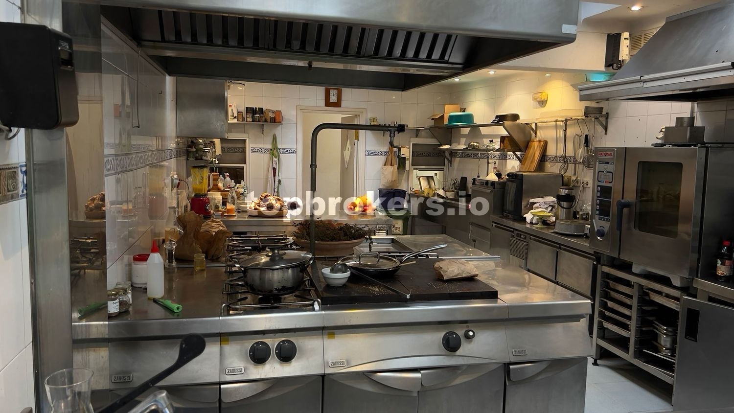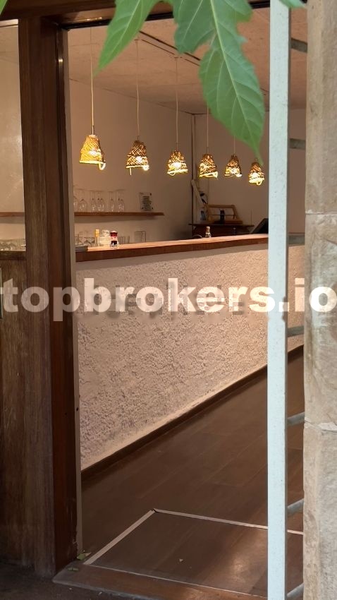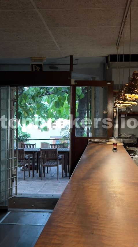 La planta baja (el restaurante) consiste en un bar amplio en la entrada, un comedor de 36,13m2 con chimenea, 2 aseos, una cocina grande de 33,12m2 totalmente equipado y al día (se sigue utilizando para clases en este momento), una sala-frigorífico, un salón privado pequeño y una terraza con salida desde la cocina.