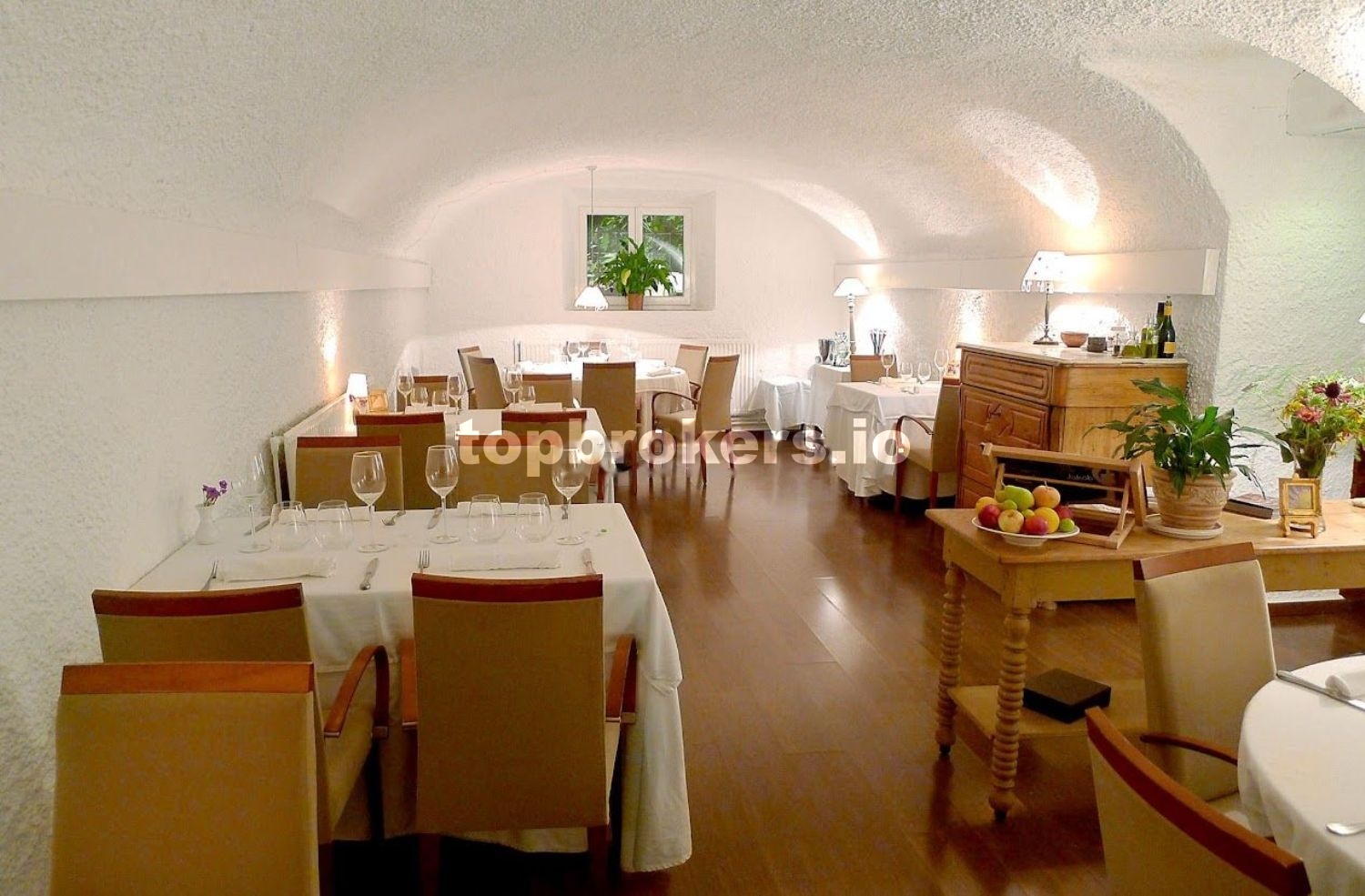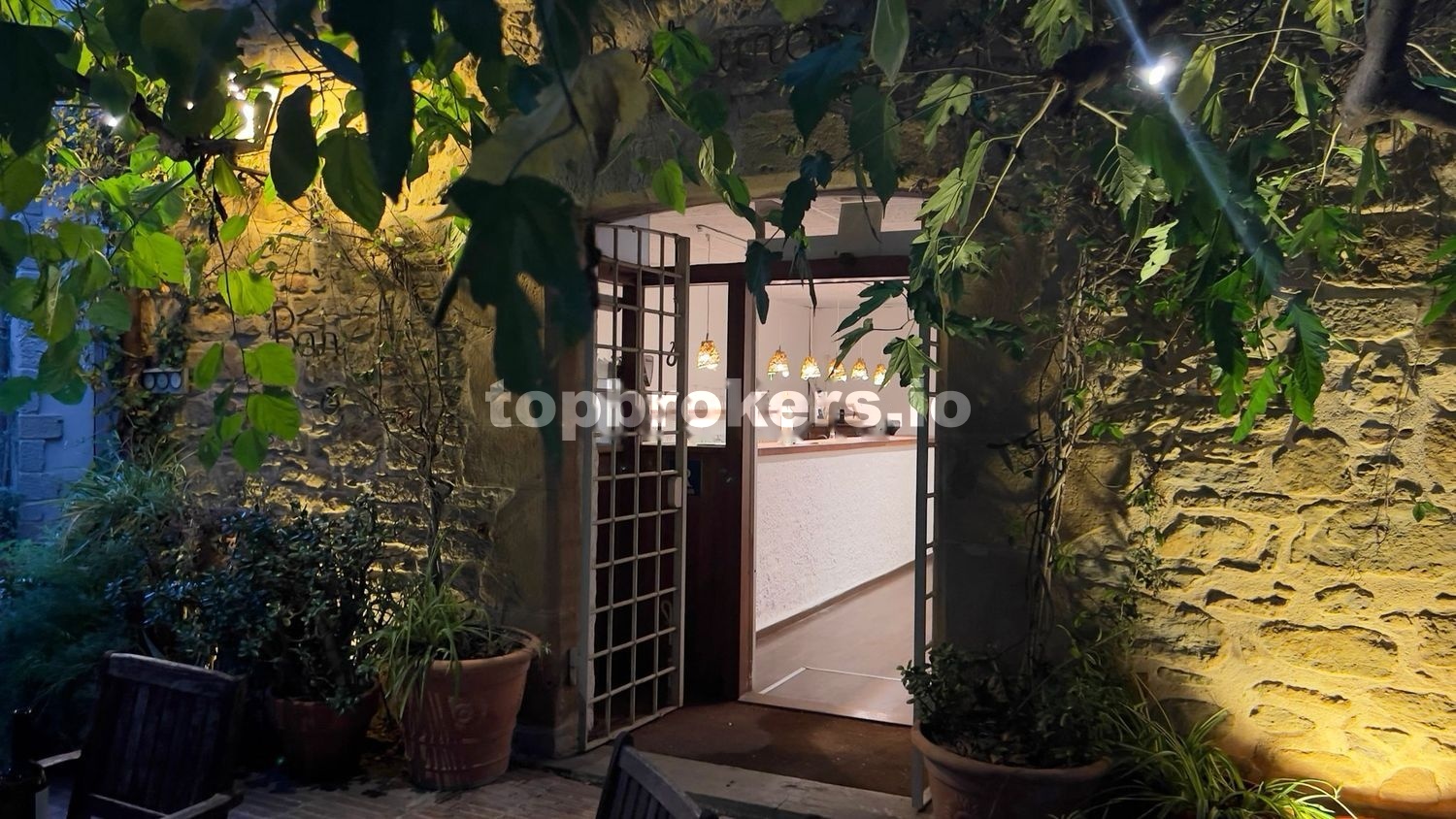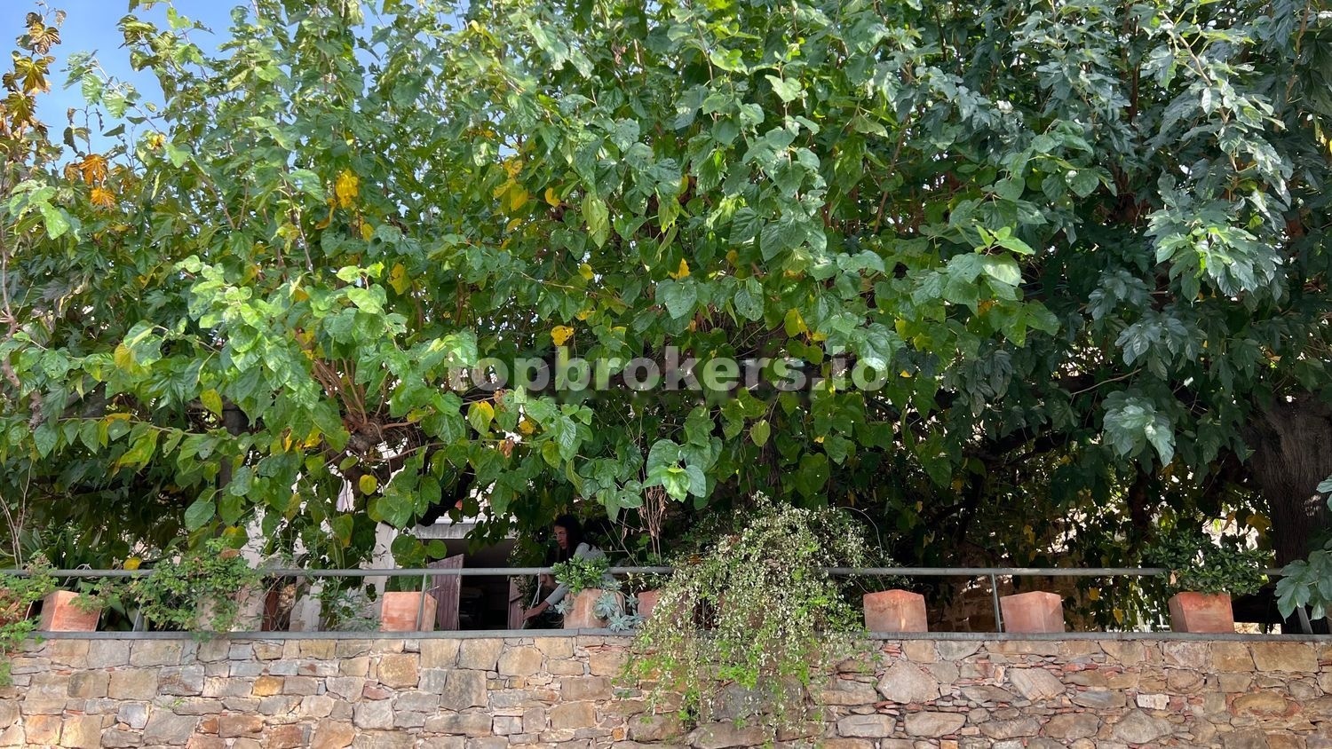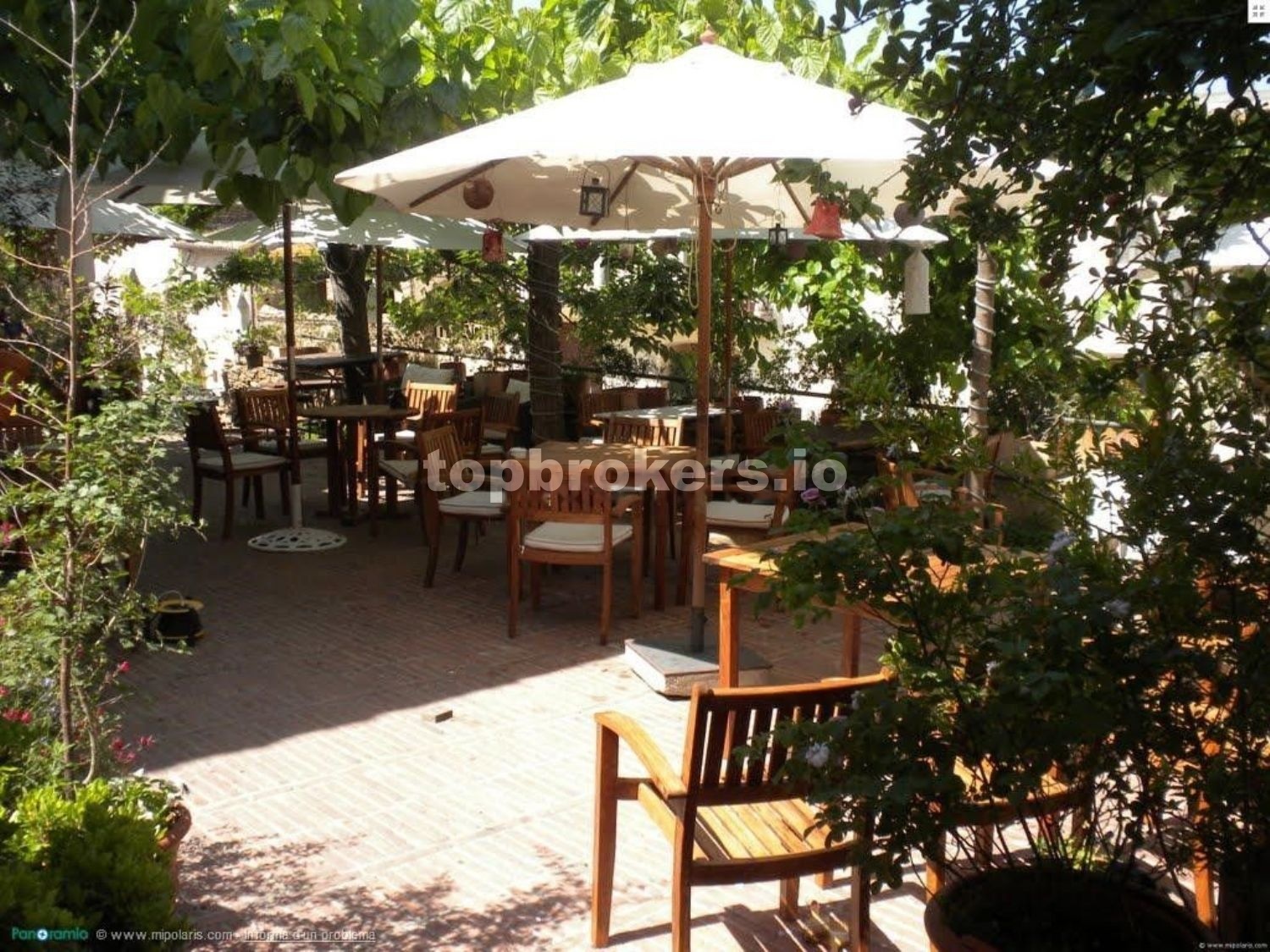 En la planta baja de este edificio principal se entra desde una gran terraza de 298,40m2, elevada desde la calle principal del pueblo y cubierta de árboles de morera. Esta planta ha sido durante 23 años un restaurante con éxito. Se cerró en 2019 debido al Covid y ahora la pareja propietaria han decidido vender toda la propiedad debido a la separación del matrimonio.